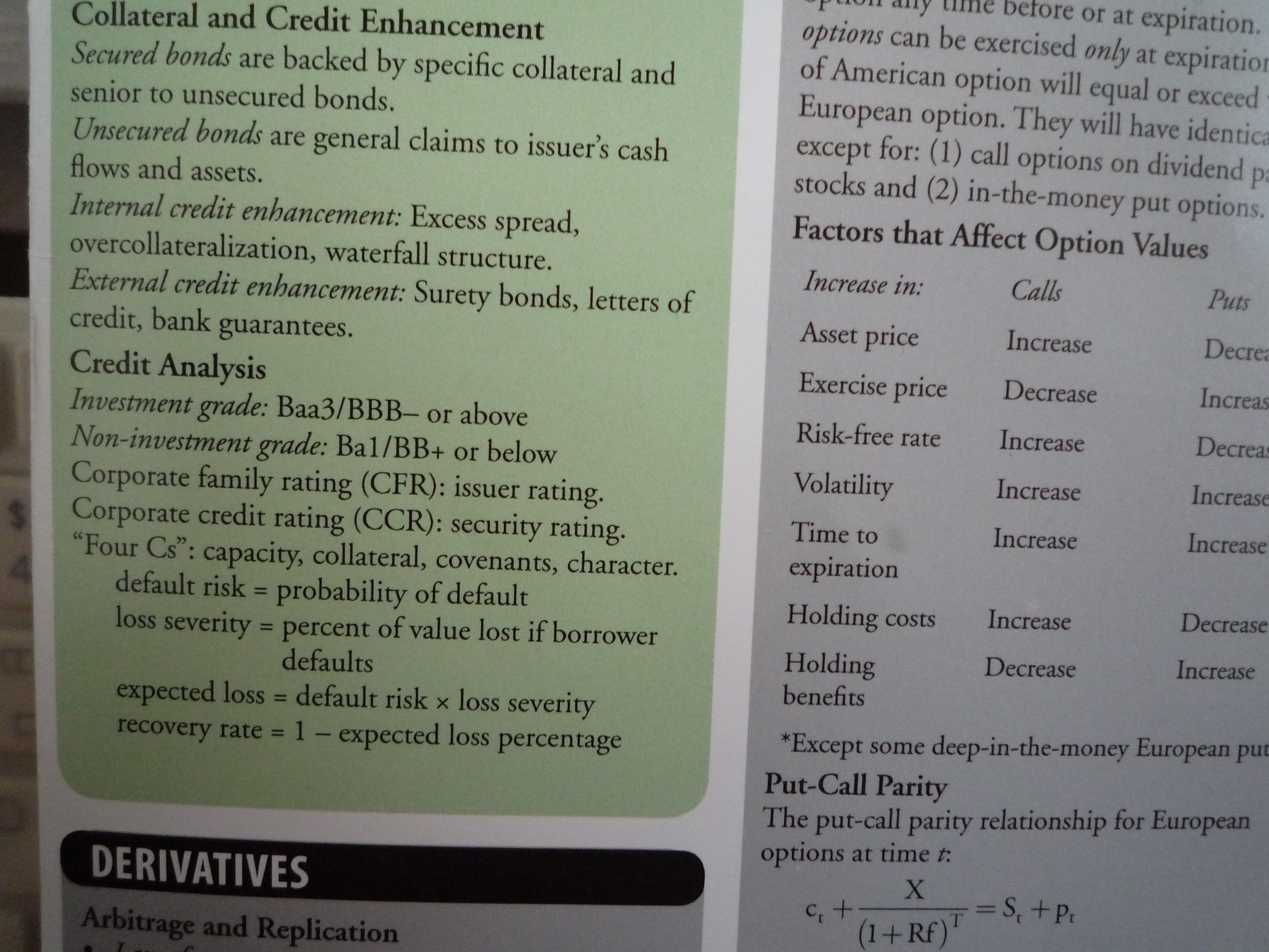 Jan, 16, 03:00 PM ReplyCorporate family rating(CFR):issuer rating.Corporate credit rating(CCR):security 회사 등급(CFR))발행자 등급.기업 신용 등급(CCR):보안 등급."Four Cs":capacity(갚을능력),collateral(담보),covenants(채무조항),character9의지).default risk(부도위험)=probability of default(부도율) loss severity(손실정도)=percent of value lost if borrower defaults( 대여자가 기본값인 경우 손실된 값의 백분율)expected loss(예상손실)=default risk(결제 리스크) x loss severity recovery rate(손실 심각도 복구 속도)=1-expected loss percentage(예상 손실률)